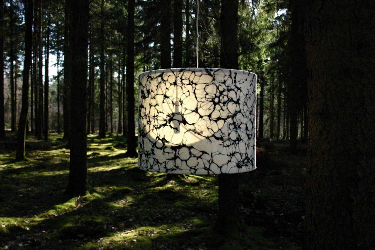 Einzigartig aus marmoriertem Filz in Kombination mit Edelstahl ist jede Lampe ein Unikat.