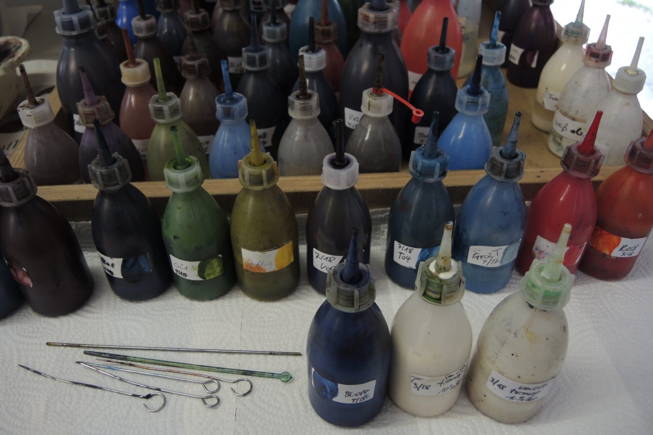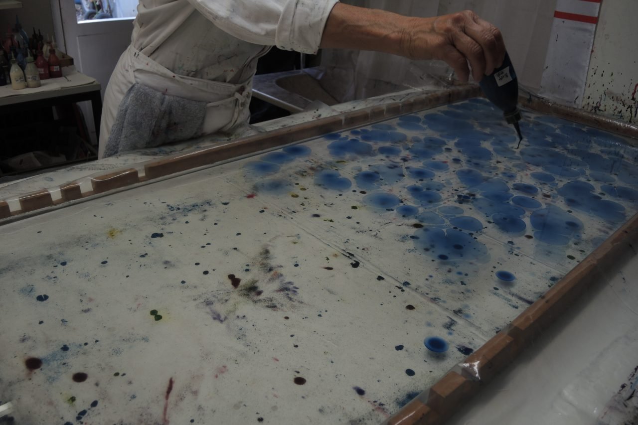 Während des Designstudiums sah ich – Hedi – auf einer Asienreise das erste Mal marmorierte Stoffe. Ich war so fasziniert von den Mustern, dass ich mich danach unbedingt selbst mit dieser Färbetechnik auseinandersetzen wollte. Mit meiner Freundin Alexa entwickelten wir daraufhin eine marmorierte Unterwäschenkollektion. Nach und nach folgten Seidenschals, Kinderkleidung, die ersten Gürtel, Lampen, Taschen und Accessoires aus Leder und Filz.